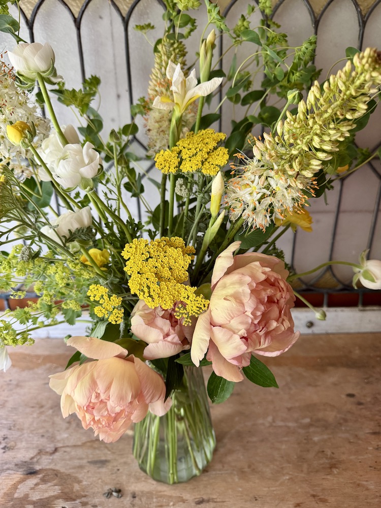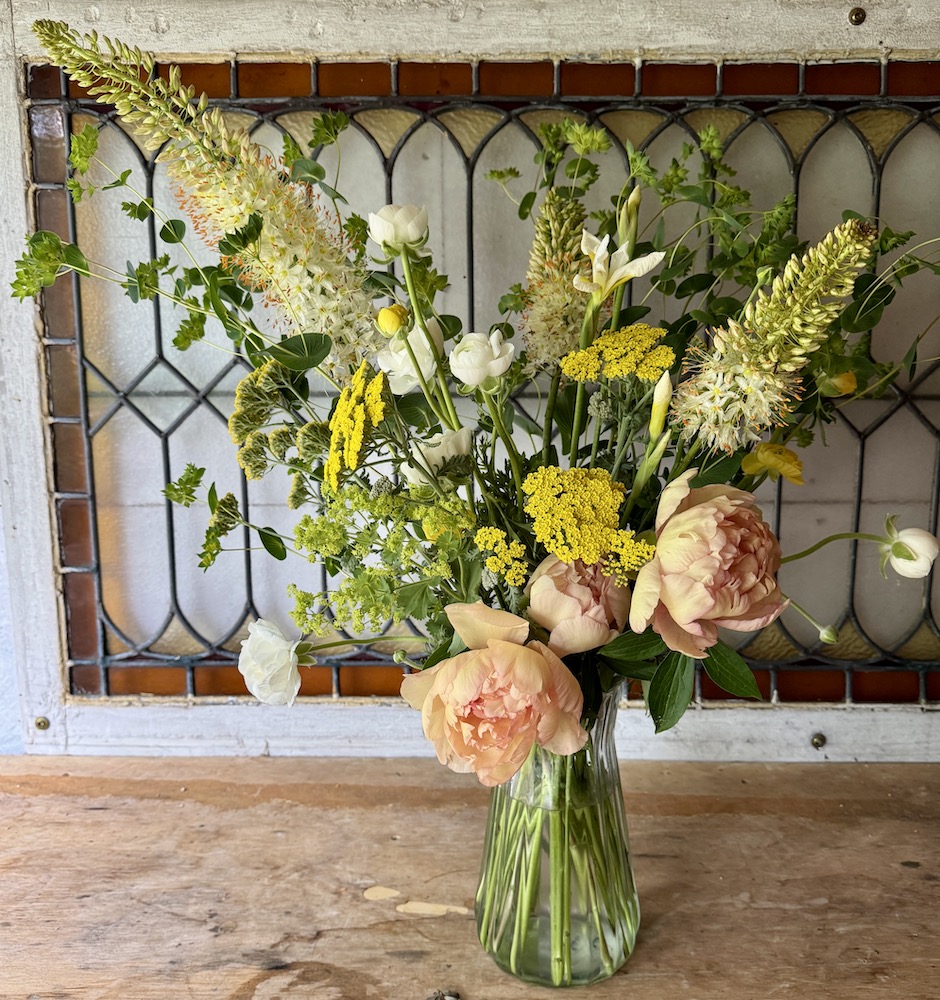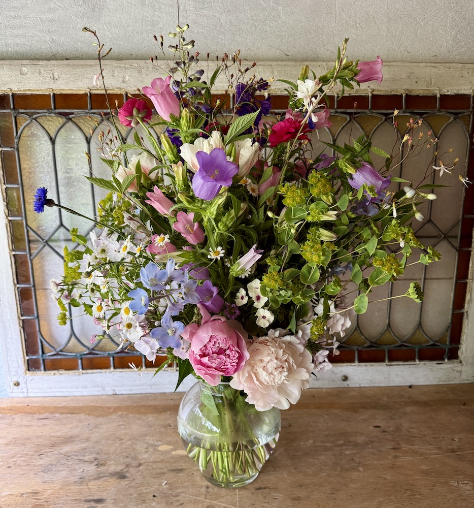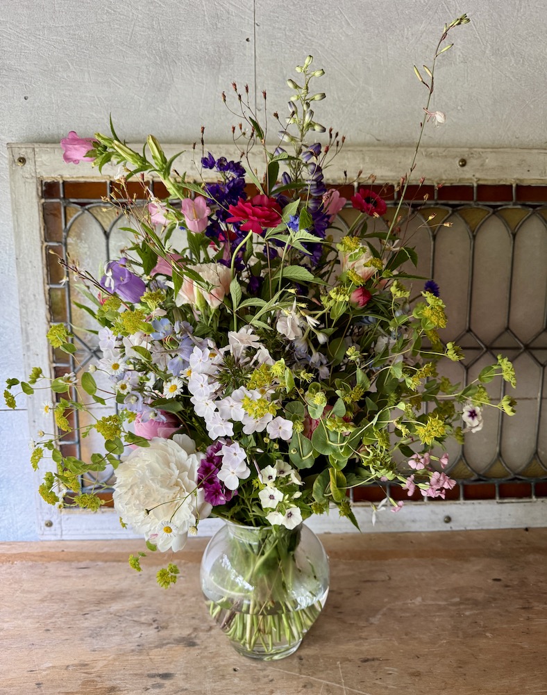 So you ask what is coming, or let me start with what has just leaving. The campanula is just about all harvested but residing in the cooler, I have harvested armloads of godetia, the fillers are doing their job, on deck are the hot pokers and eremerus which will make some really cool arrangements. The lavender needs shearing and just so much more. The flower buckets are overflowing.