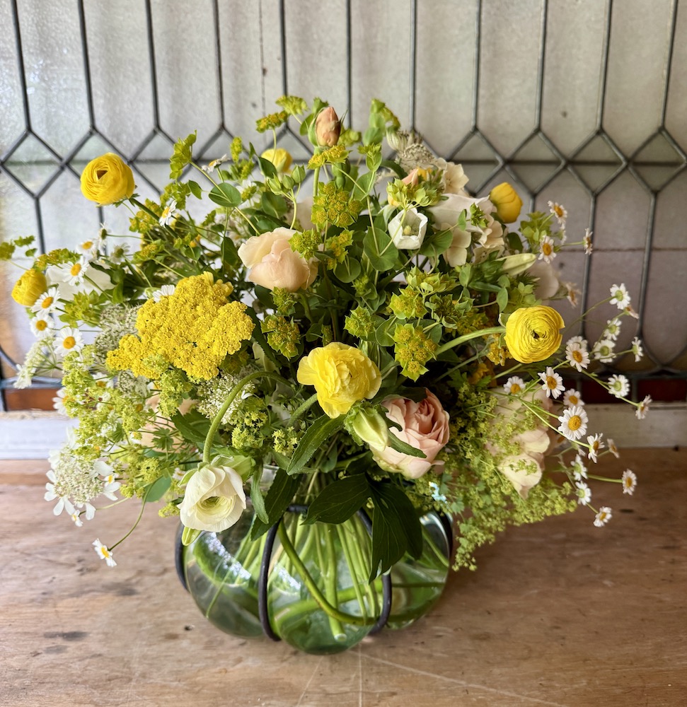 The zinnias are struggling, but the rest of the summer annuals are pretty close to being available. So please remind me when you get flowers to get your flower food because it is dirty flower season. In case you don’t remember, the dirty flowers are the zinnias, rudbeckias, and any other flower that has hairy stems, as well as non hairy. The water needs to be changed more often because it gets skanky. If you don’t get flower food or it runs out, just add a couple of drops of bleach to the flower water. This kills the bacteria that makes everything go yuck. Also make sure your vases are clean. If you don’t want to drink the water, your flowers won’t want to drink the water.
