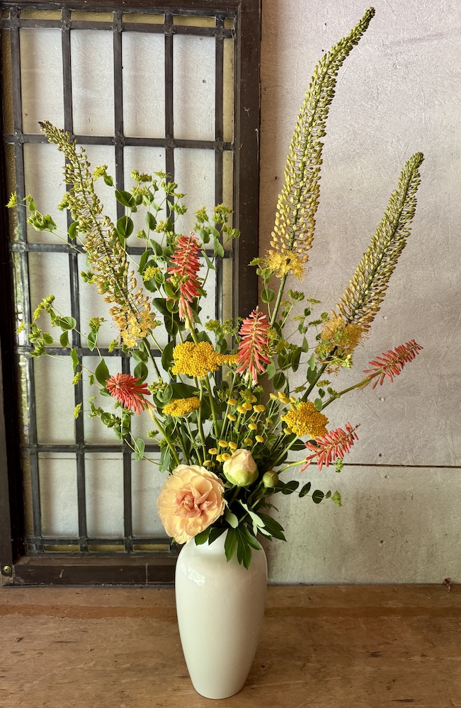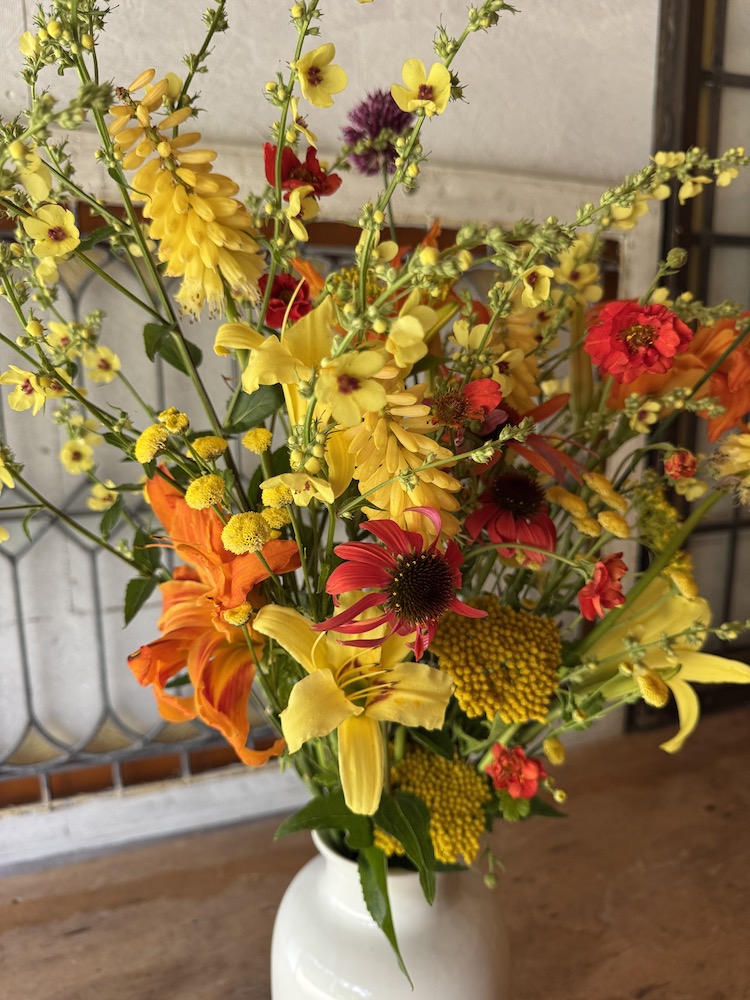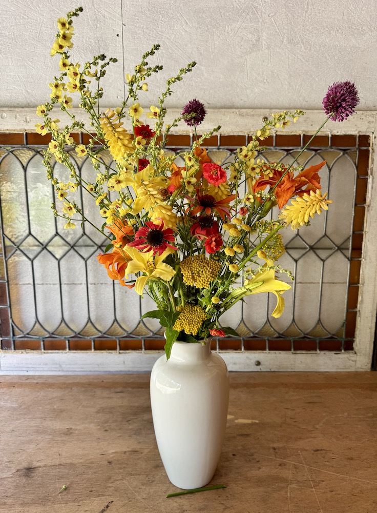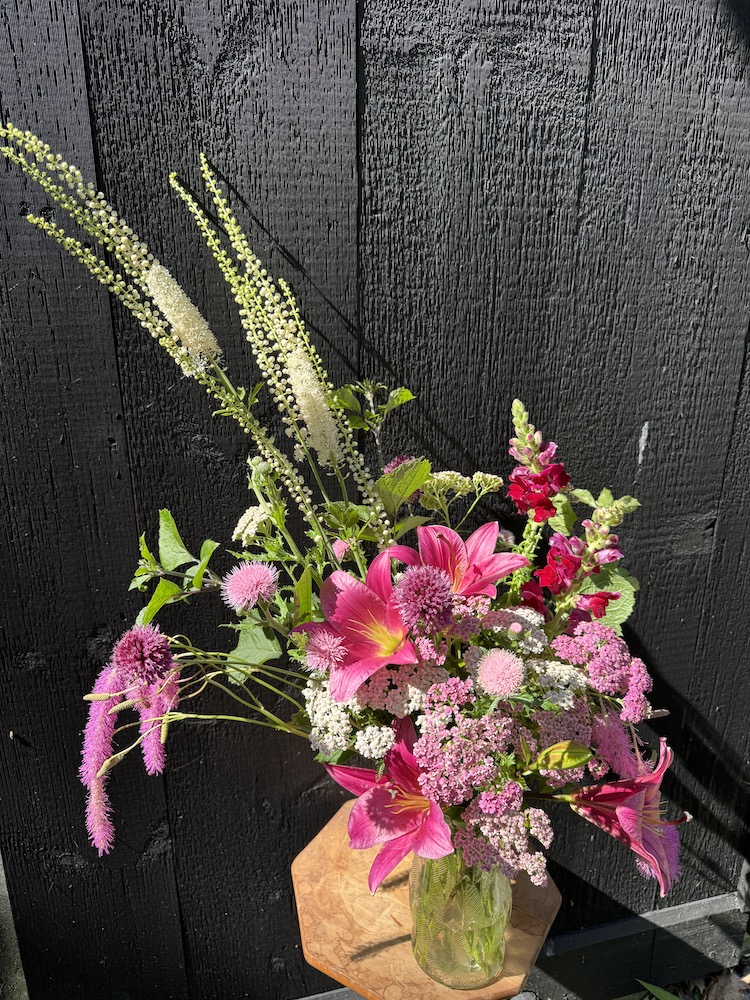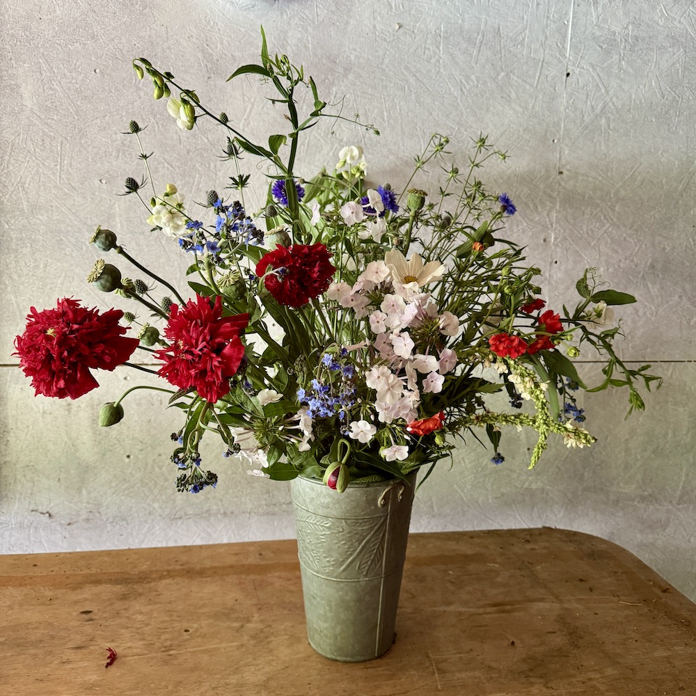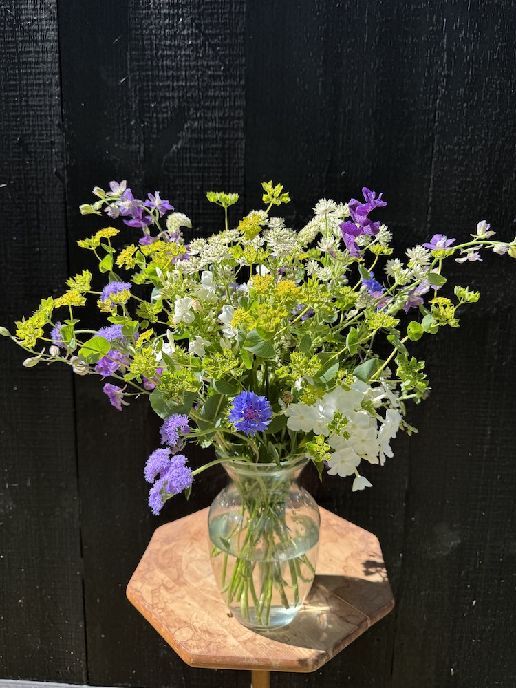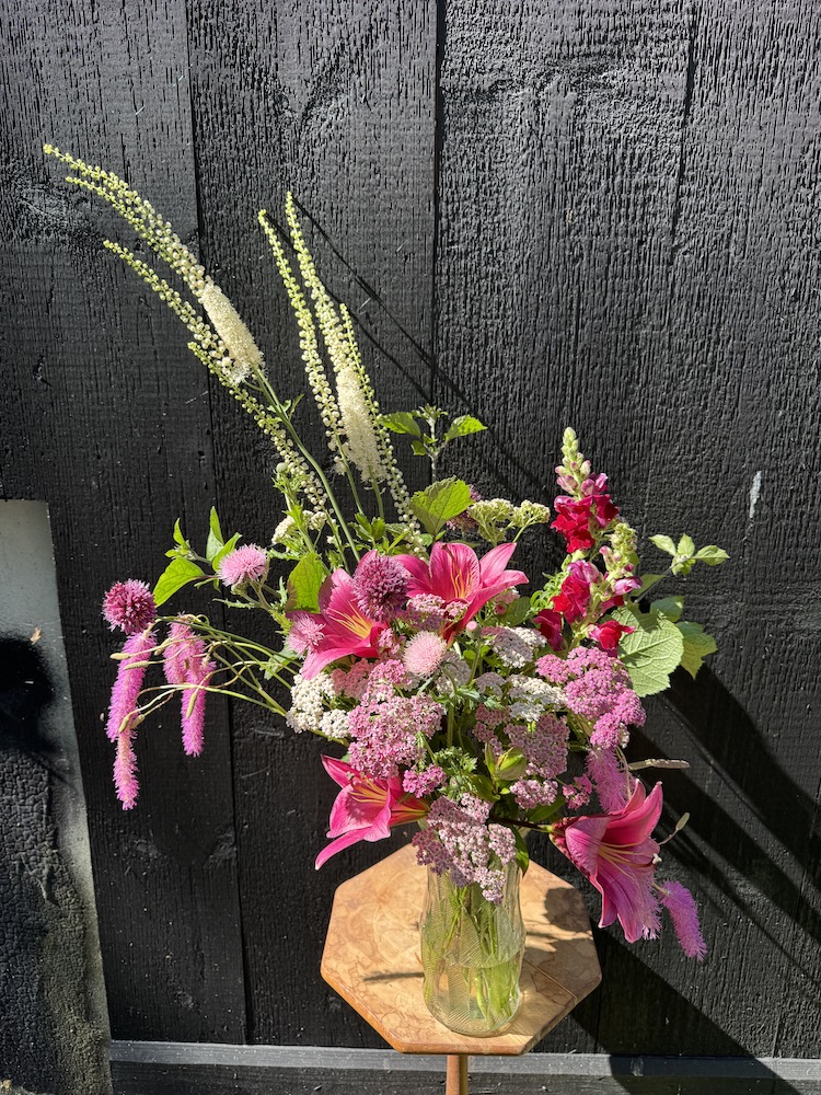 I heard a beautiful quote the other day from an extraordinary farmer florist in Belgium. ” I plant, and grow flowers to inspire creativity”. I like to think that is what I do, or try to do. I plant flowers that not only bring happiness, but to create creativity. That is one of the reasons that I have starter bouquets, and then buckets of loose stems, to spark your creativity. It certainly sparks my creativity, and having an interesting selection of blooms and foliage in abundance certainly helps.