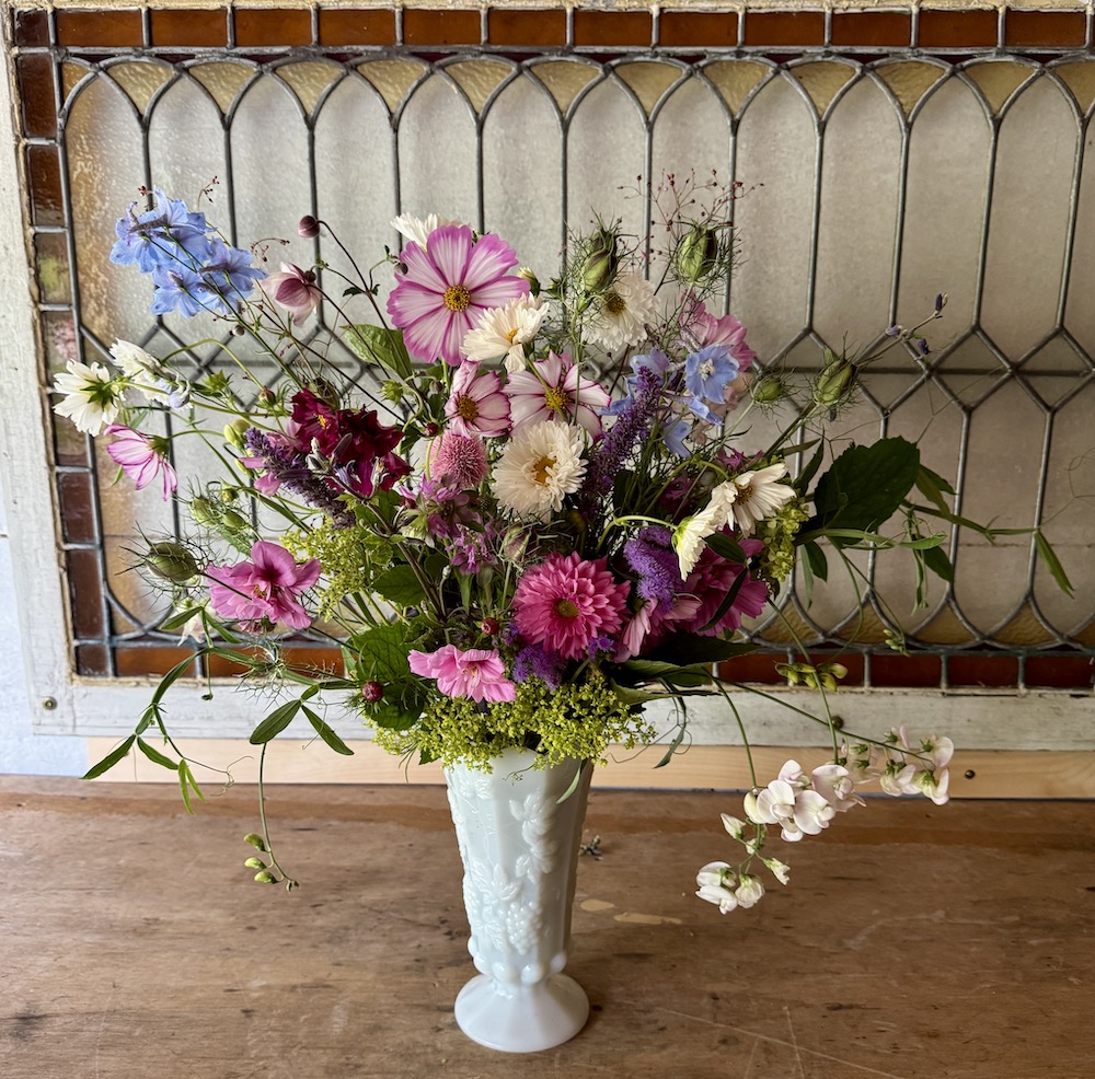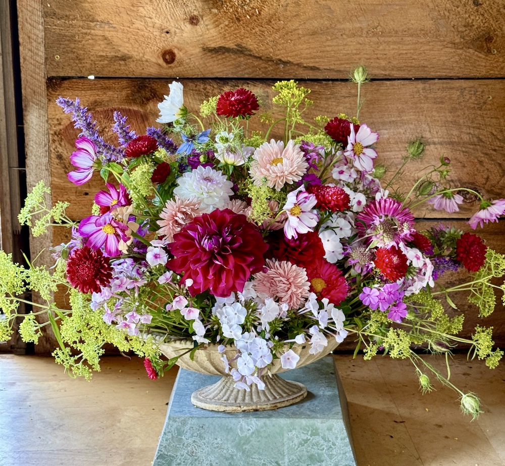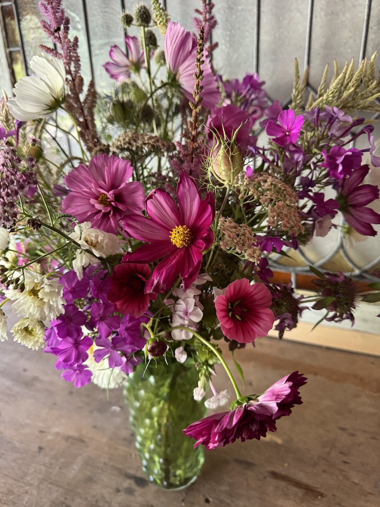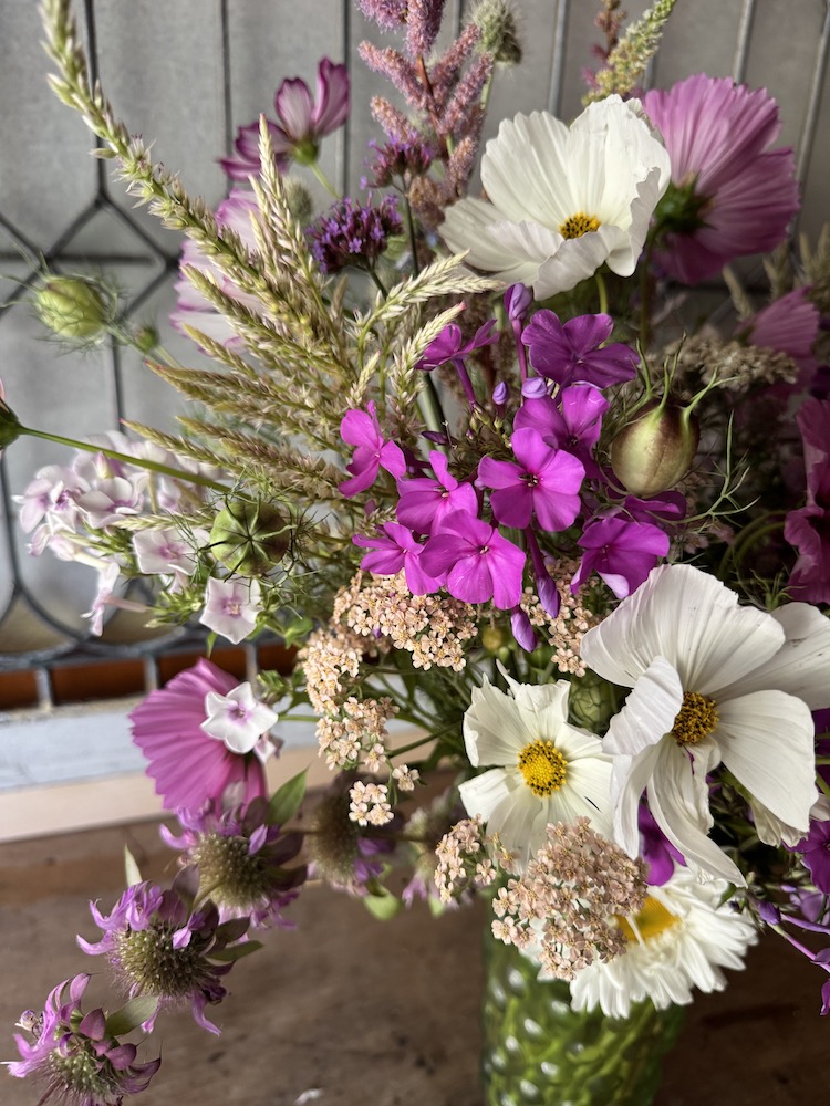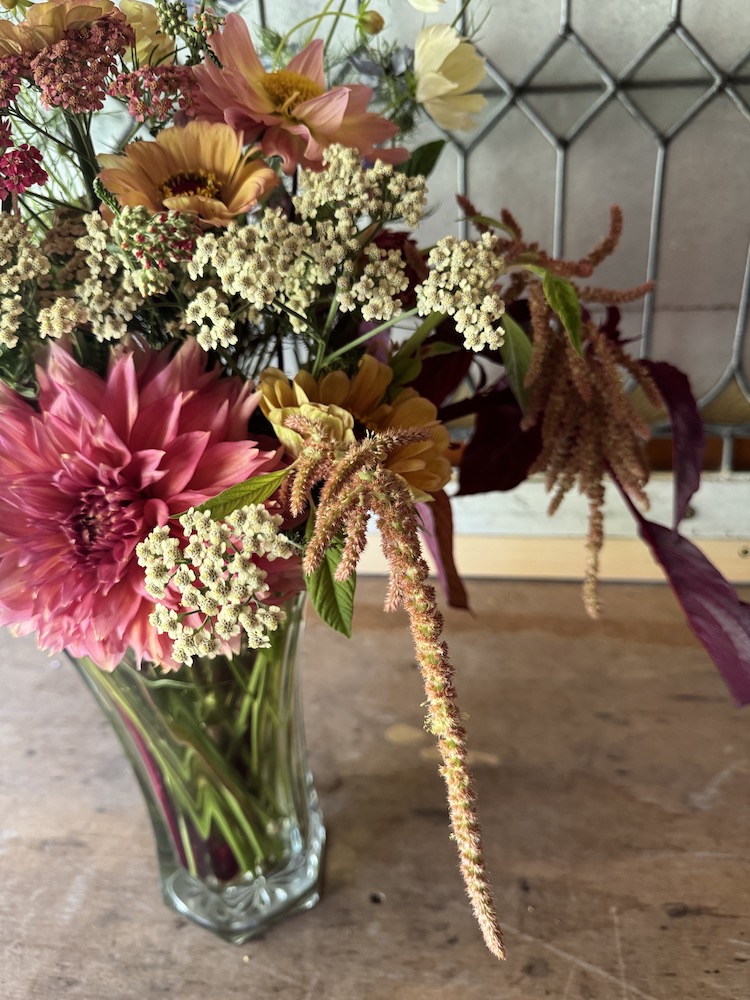 Well another gardening month done. Probably two months to go. Don’t get me wrong, I love flower farming and all my flower lovers, but it has been a bit of a challenging year this year. first with the nonstop rain and the prolonged cold, then the extreme heat, and now the wicked dryness. I have less than 400 gallons of water left in my big tank with no rain in sight. A plus is that the days are shorter, it that a plus? Yup. Less sun on the plants and betters hours for the flower farmer.