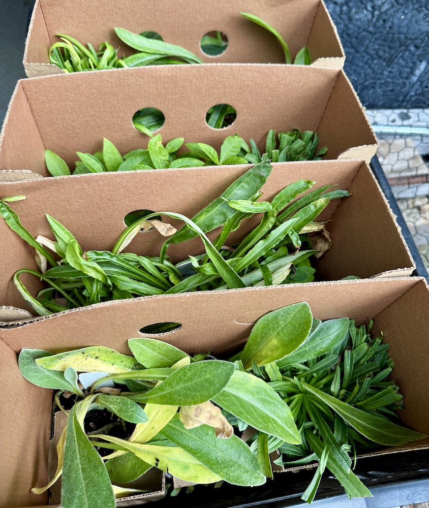 But it feels like early September. What a beautiful weekend it has been. And to make it even more beautiful we had over two inches of rain last week, so my rain tank is up to 800 gallons so I can water freely now. That is good because I have a lot of transplanting to do. I started on Friday, and even with those two plus inches the ground is still dry, but I have water so I can hand water the transplants.