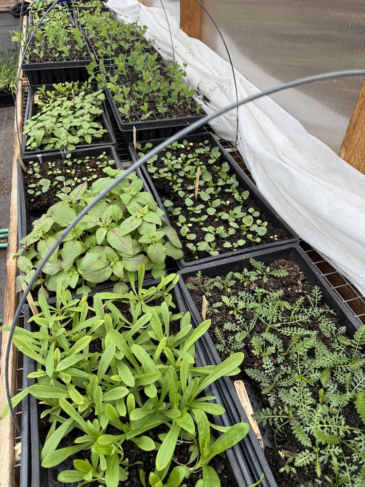 The summer annuals have been seeded for the most part and they have all germinated since Tuesday’s sowing. Once they get their true leaves, they will be transplanted, and eventually go into the greenhouse ready to grow on until they are planted out.