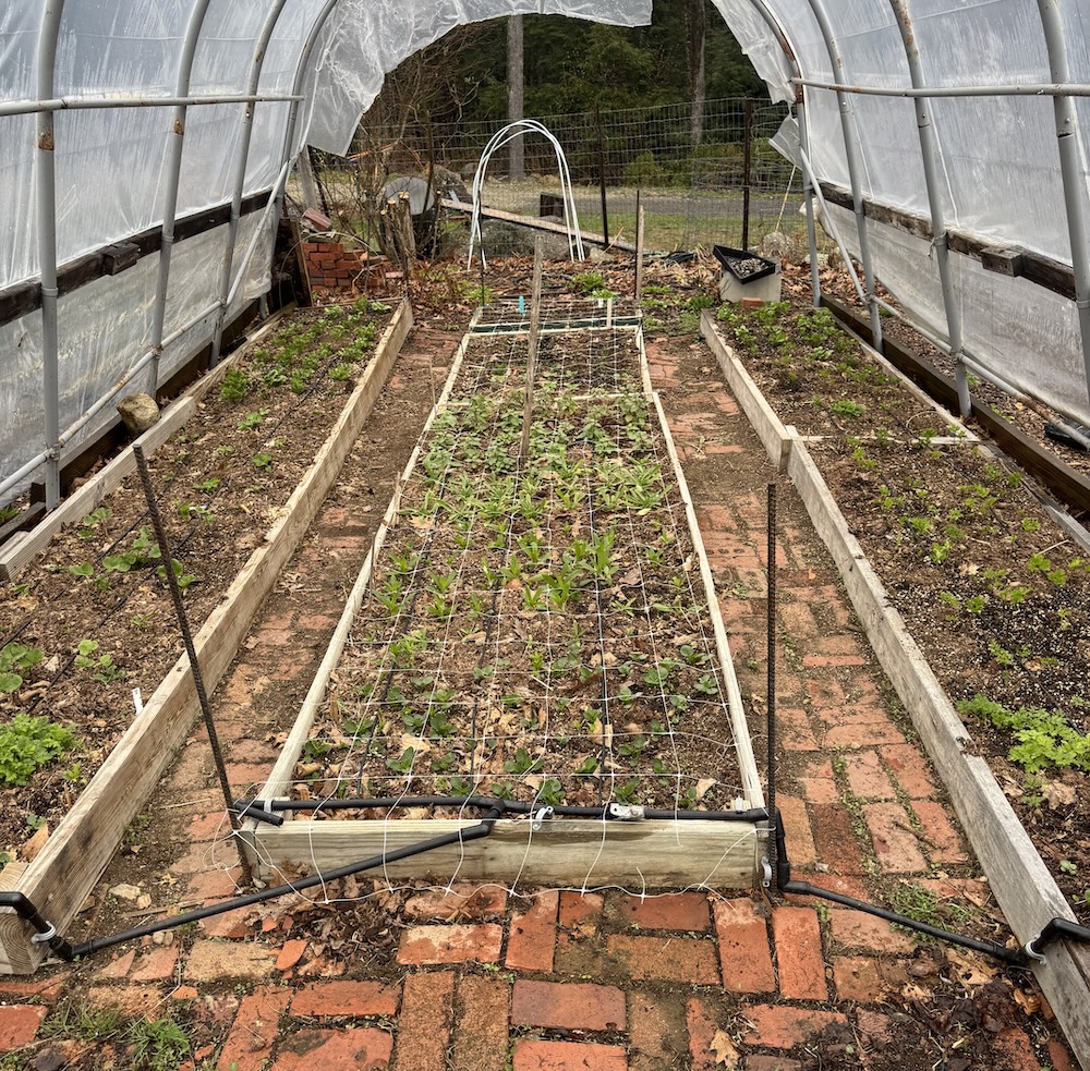 Tonight’s temperatures doesn’t really worry me. They say (the very accurate weatherpeople) our low is going to be 29 degrees at 6am. Ok, everything I have planted out so far (and it’s a lot) is cold hardy so should be fine. Fingers crossed. My big concern is Tuesday morning were it is to be 23 degrees. We will have a problem. Flowers, and flower buds are very susceptible to be killed at these temperatures. See all those beautiful tulips? I am going to have to try to protect them. I am sure I will not get much sleep the next two nights worrying. l have hoops that I can put over the tulips with frost cloth, and Christmas lights for a bit more heat. I am and will be harvesting everything tomorrow that is even close to harvesting. I can always store it in the cooler.